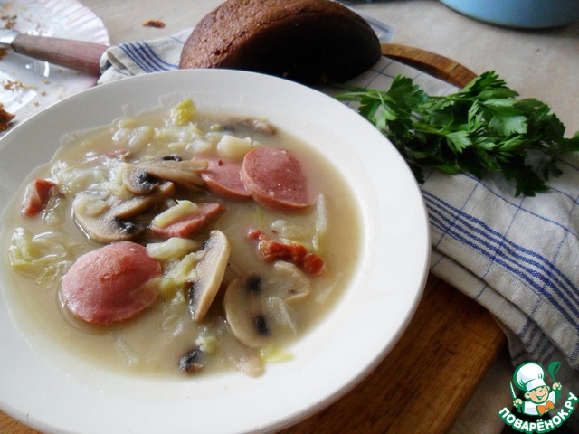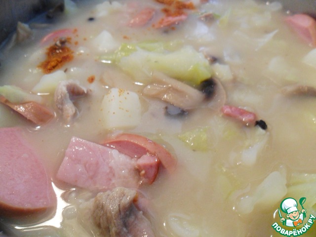 Жареные сардельки переложить в суп. Обязательно попробуйте и заправьте если нужно еще перцем, посолите.
