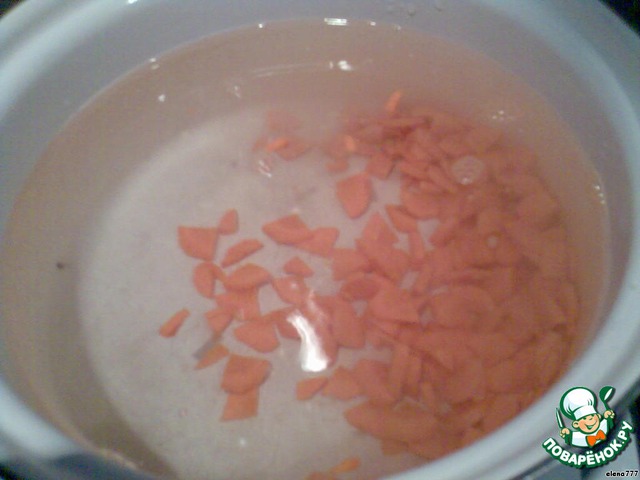 морковку почистить и порезать тонкими кусочками, положить в кастрюлю и варить после закипания 10 минут.