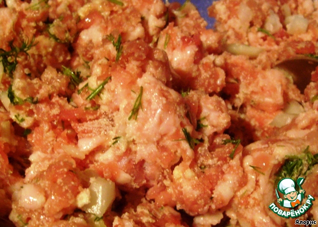 Фарш смешиваем с нарубленным укропом.