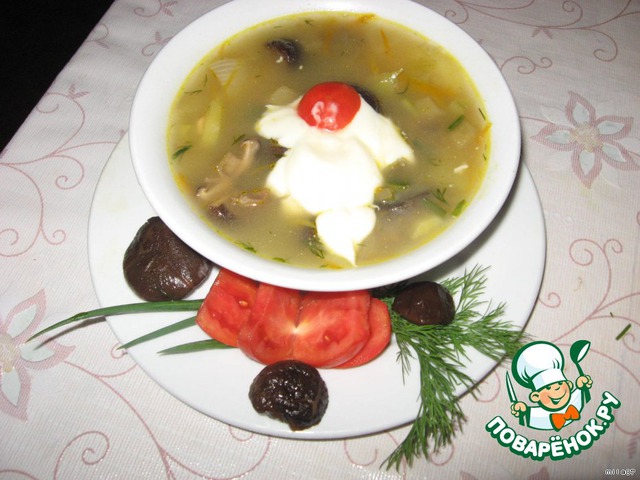 Начинала готовить одно,но каждый из родных просил кое-что добавить для него в итоге в супе оказался перчик для мамули, грибы для любимого мужа, а сырок с копченным ароматом-это уж для себя любимой.