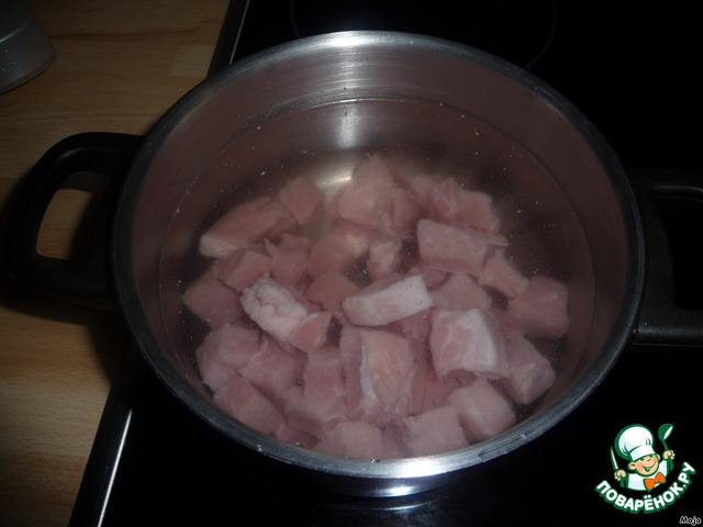 Из нарезанной на кусочки мякоти мяса сварить бульон.