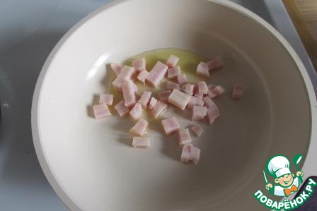 Нарезаем грудинку: отдельно сало мелкими кубиками и отдельно мясо.