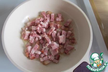 Добавляем остальную грудинку и жарим 5 минут, помешивая.