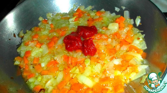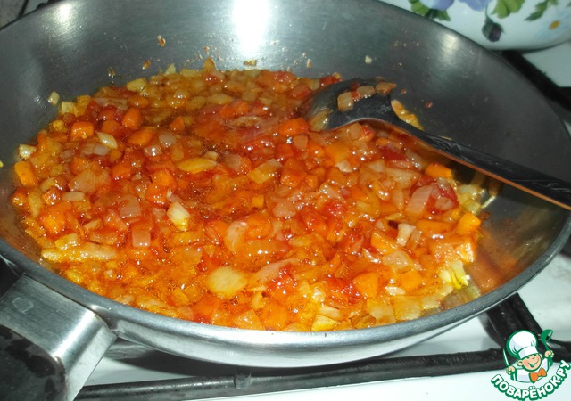 Затем добавляем промытую чечевичку, и оставляем все наши компоненты на 15 мин."знакомство".
