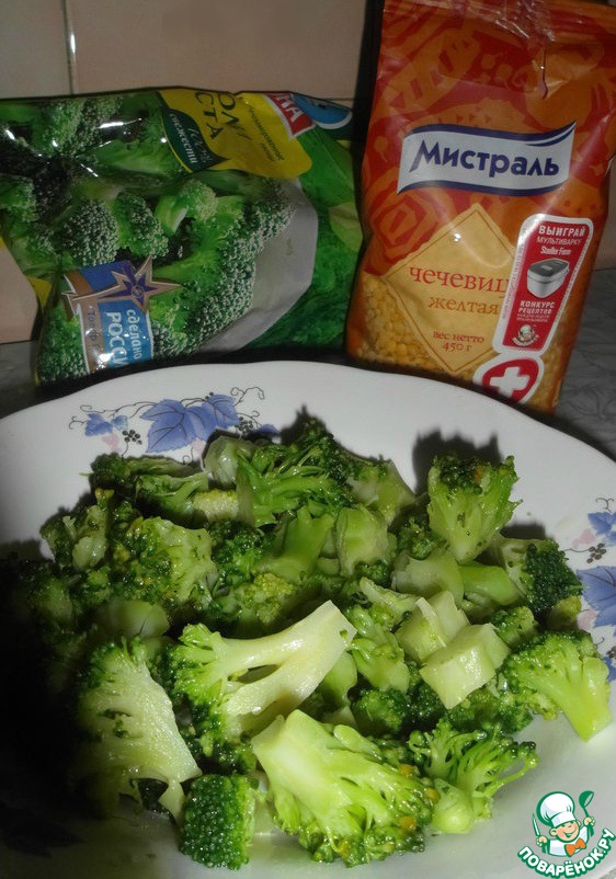 Как только все "перезнакомятся" между собой, добавляем к ним почти что заключительного гостя - предварительно промытую брокколи.