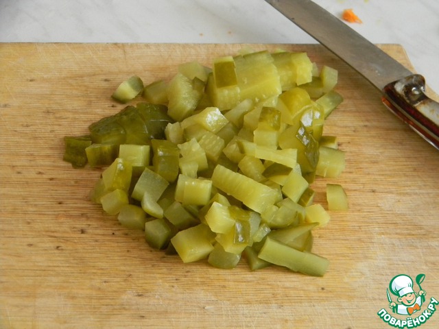 Огурец нарезать кубиком и добавить к суп, дать закипеть и варить 5-7 минут.