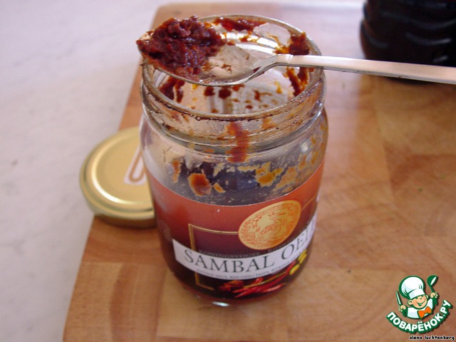 Суп снова довести до кипения, добавить перец (на фото паста из жгучего перца) и пару капель кунжутного масла. Снять с огня.