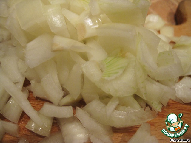 Лук - кубиками.