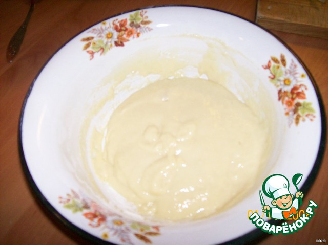 Из яйца, 3-4 ст. ложек молока, муки, соли замесить тесто густотой как для кекса или оладьев.