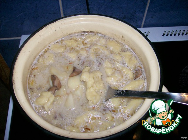 Когда клецки всплывут, добавить сыр. Проварить еще 2-3 мин. Готово.