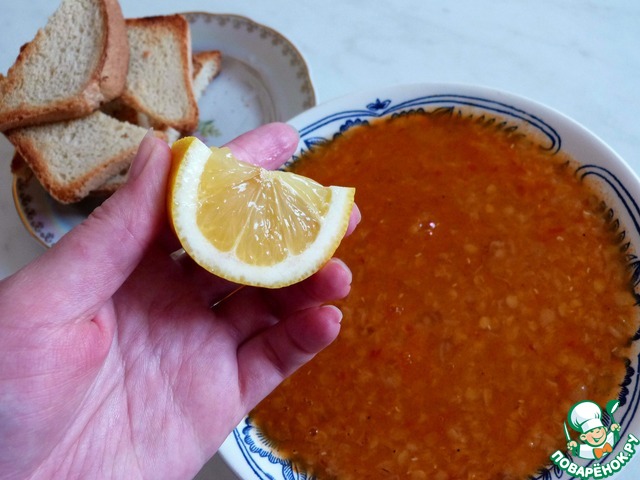 Обязательно уже в тарелку с супом выдавливаем немного лимонного сока -0,5-1 чайной ложки, по вкусу, лимон идеально подходит к данному блюду и делает вкус еще насыщенней.