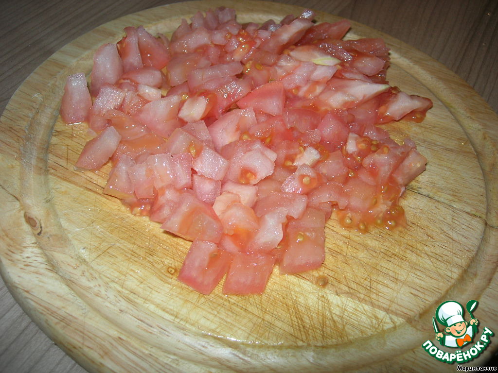 томаты мелко нарезать (можно предварительно ошпарить кипятком и снять кожицу)
