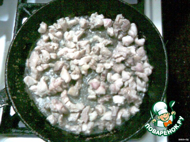 курочку обжарить на 1 стол. л. раст. масла на сильном огне, отложить на тарелку