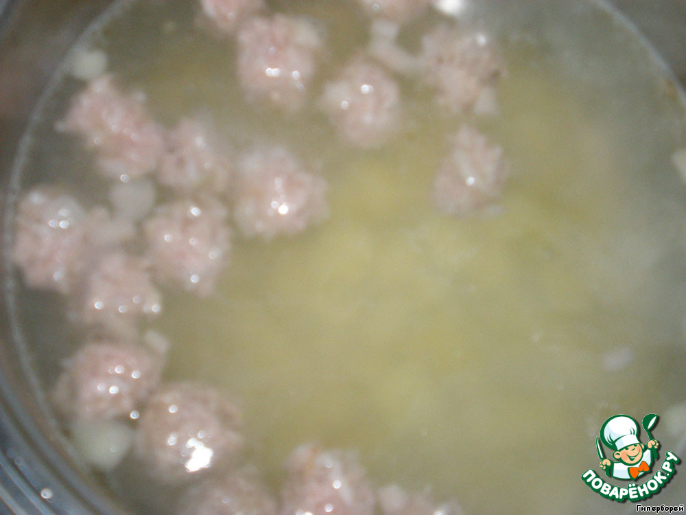 В кипящую в кастрюле с картофелем воду отправляем подготовленные фрикадельки.