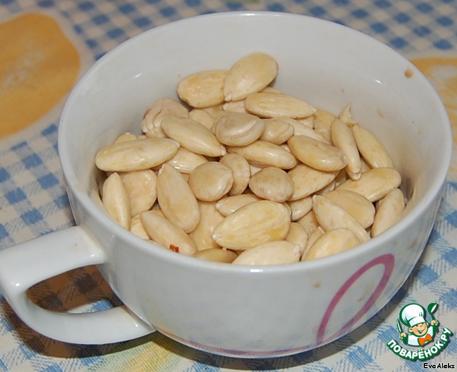 Очистить миндаль от шкурок.