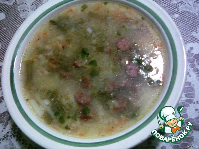 режу колбаски и добавляю к картошечке, которая уже даже слегка разварилась, к чему я и стремилась