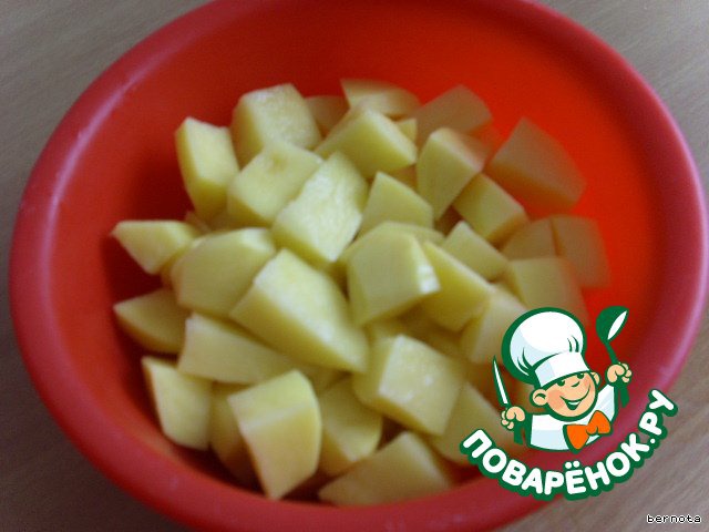 Картофель нарезаем кубиками, примерно 2-3 см.