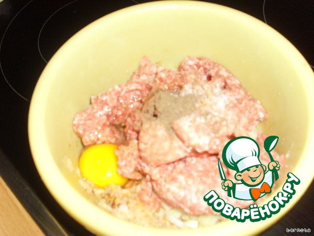 Яйцо мускатный орех, соль, перец и перемешиваем.