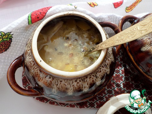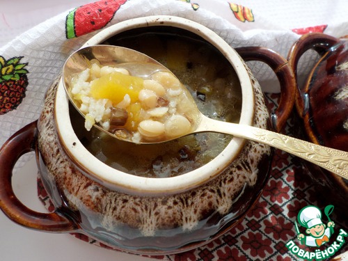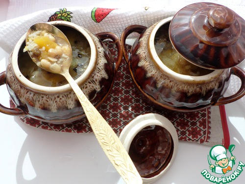 Постный фасолево-рисовый супчик в горшочке
