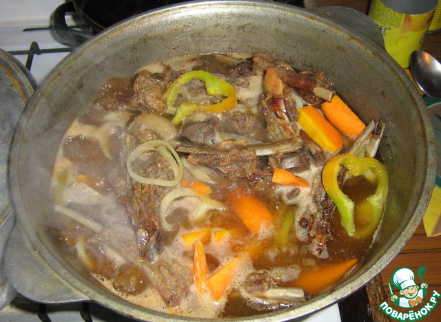 | Готовить такой шулюм приходилось и на охоте, и дома, поэтому фотографии сборные. |