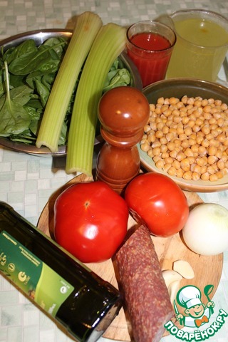 Суп из турецкого гороха с испанской колбасой "чоризо"