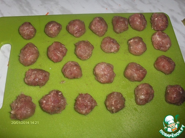 За это время в фарш добавить соль, перец по вкусу. Яйцо я не добавляю, ничего не разваливается и варится отлично. И сделать из фарша небольшие фрикадельки.
