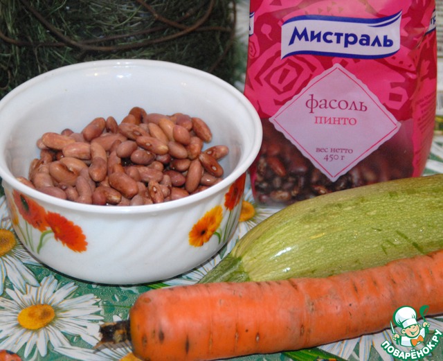 Фасоль замачиваем в воде на 8 часов или на ночь. Воду сливаем, фасоль отправляем в кастрюлю.