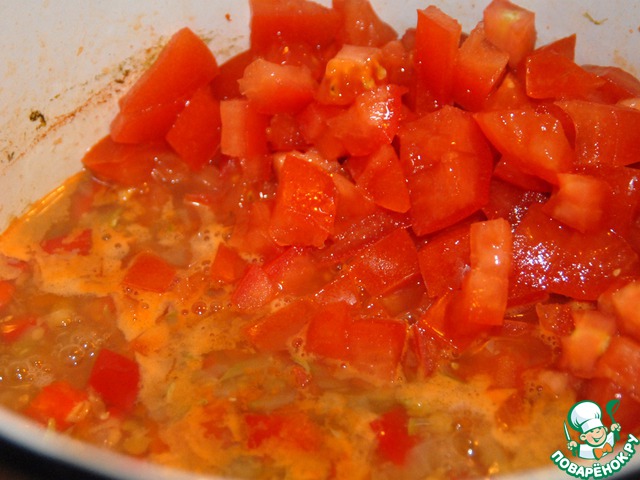 Помидоры моем, мелко режем и закладываем в кастрюлю.