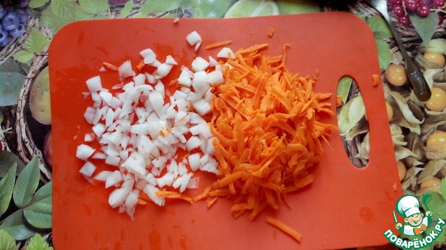 Морковь натереть на терке, порезать лук
