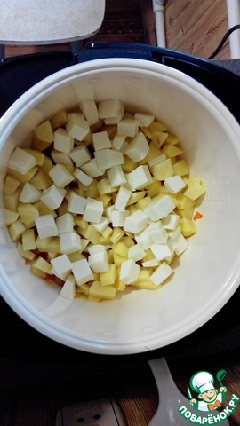Сырный суп с сухариками в мультиварке