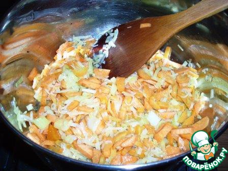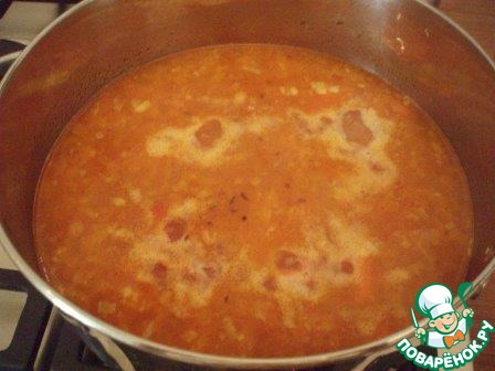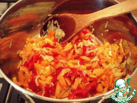 Чечевичный суп с луком-пореем, молодой морковью и болгарским перцем