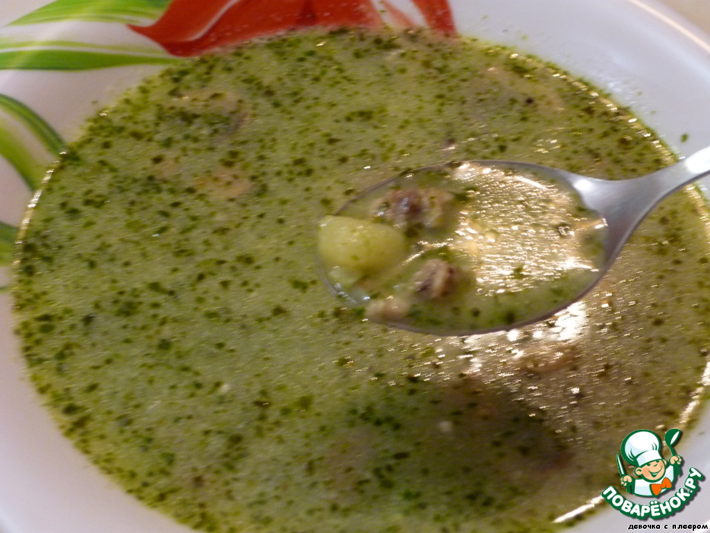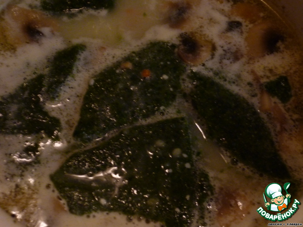 Добавить в суп плавленный мягкий сыр и шпинат.
