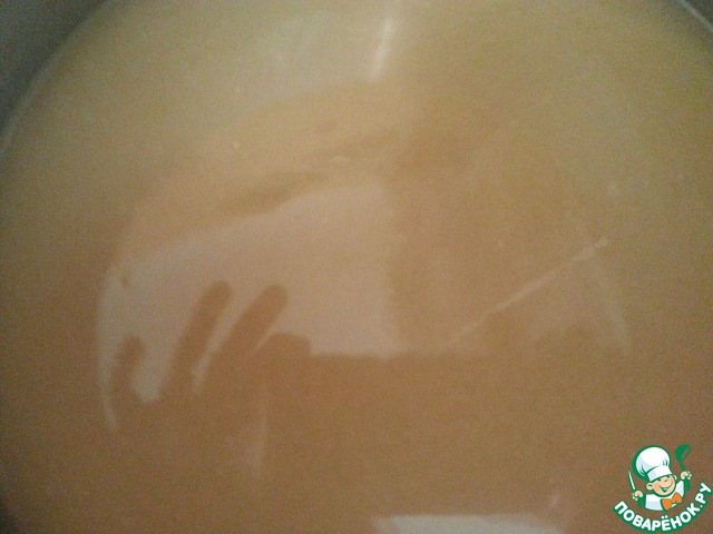 В муку по не многу вводим 200 мл. остывшего бульона. Варим мешая, чтобы комков не было.