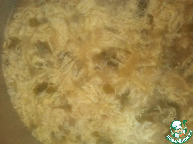 Добавляем взбитые яйца, постоянно мешая. Варим еще 5 минут.
