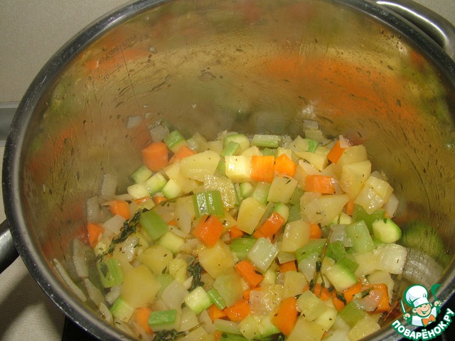 Затем добавляем овощной бульон (можно воду) и доводим до кипения на сильном огне. Варим минут 7 на слабом огне, добавляем соцветия брокколи и продолжаем варить еще 5-7 минут. Солим и перчим по вкусу, выключаем огонь, накрываем и даем минестроне настояться и раскрыться всем его ароматам 10 минут.