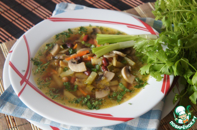 Грибной суп с фасолью