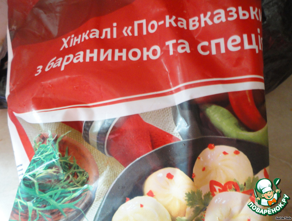 Я обычно для своих варю пельменный суп на курином бульоне. Сначала варю бульон с добавлением луковицы и лаврового листа. Потом отливаю порционно бульон в другую посуду, варю в нем пельмени (чаще всего собственноручно налепленные, но иногда и магазинные, каюсь). В тарелку добавляю порванные руками кусочки вареной курицы из бульона и зелень. Но вот относительно недавно нашла в магазине такие вот хинкали с бараниной. Я баранину ну просто обожаю! Но вот муж и доця ее не понимают, поэтому баранину я сама не покупаю, т.к., во-первых, выбирать не умею, а во-вторых, себе самой нужно готовить немного, а это трудно сделать из какой-нибудь бараней ноги. Вообщем, довольствуюсь бараньими шашлыками в кафешках, а такие хинкали для меня просто находка!