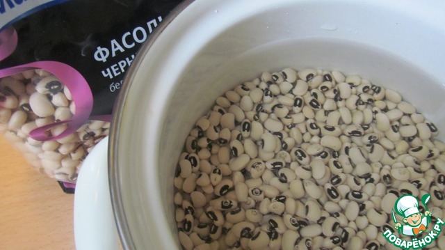 2. Фасоль 10-15 минут отварить, воду слить. Я брала сорт Черный глаз, фасоль сахарная, быстро варится.