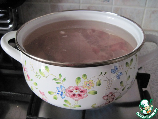 Мясо залить холодной водой и варить до готовности с добавлением соли.