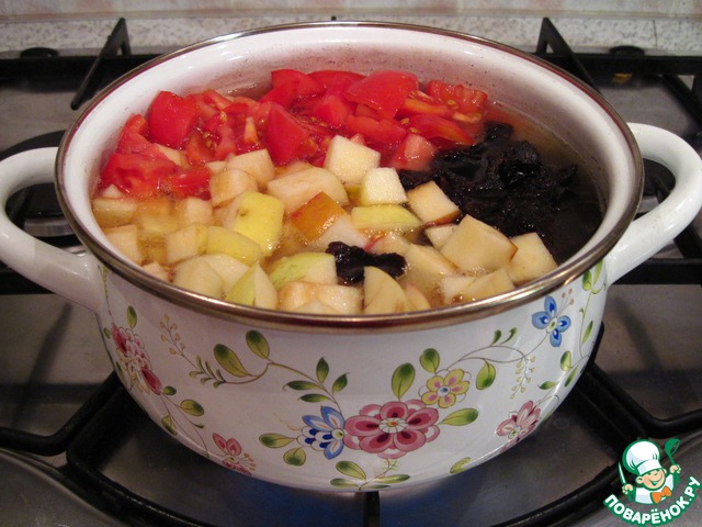 Суп гороховый с яблоками, томатами и черносливом
