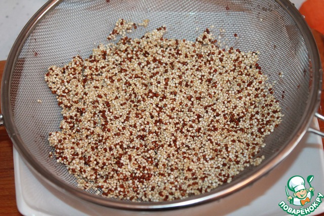 Киноа используем ТМ "Мистраль", нам необходимо примерно 200 гр., чуть больше половины стакана. Суп с таким количеством получится густой. Если Вы хотите больше жидкости в супе, тогда уменьшите количество киноа.