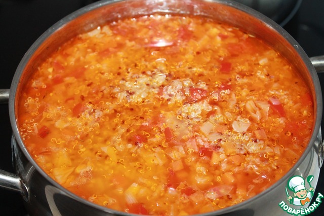 | Киноа является прекрасной заправкой для супов. Представляю Вашему вниманию рецепт супа, который приготовить очень просто, из вполне доступных продуктов. Кроме того, этот супчик очень полезен по своему составу. В случае если заменить бульон на воду получится отличное вегетарианское, да и диетическое блюдо. |