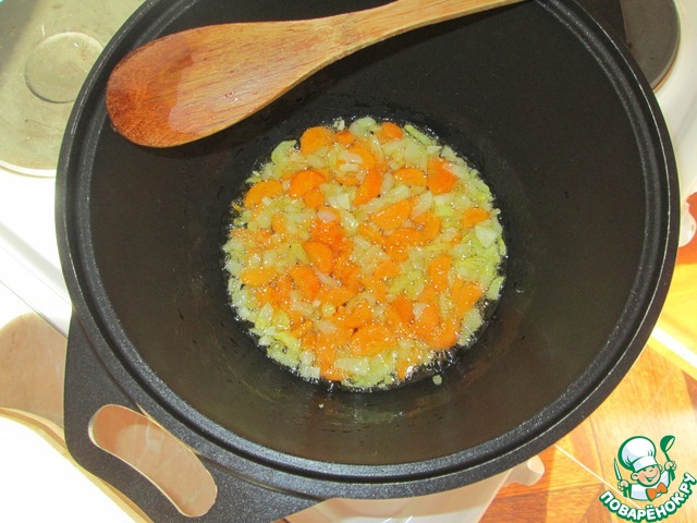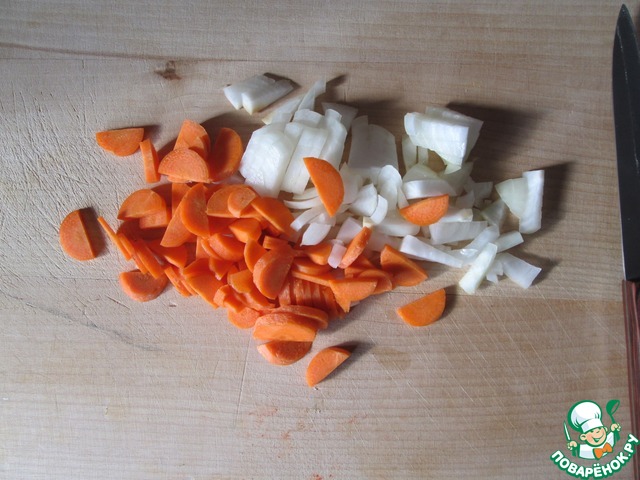 Нашинкуйте лук и морковь