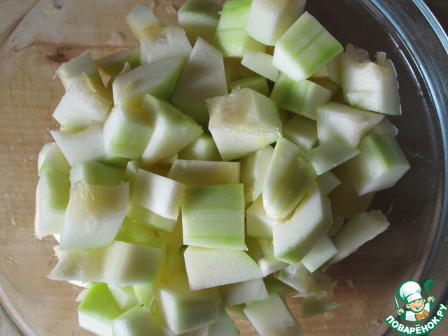 Кабачок очистить, удалить семена и нарезать кубиком