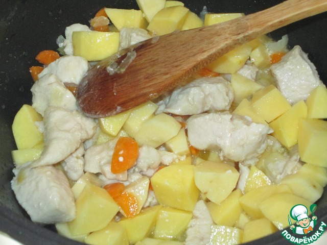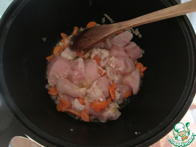 Добавляем филе, перемешиваем
