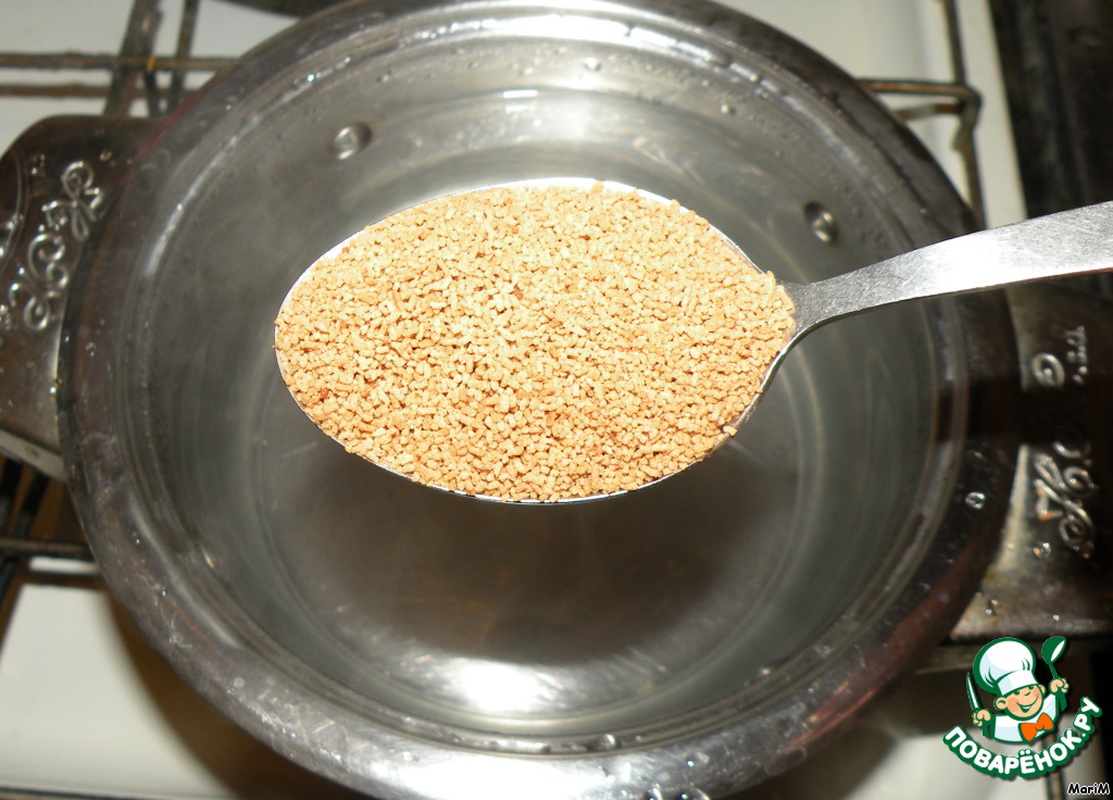 В кипящую воду добавить 1 ст.ложку гранулированного рыбного бульона, перемешать.