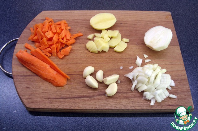 Овощи чистить, резать. Морковь положить в бульон, как только закипит вода. Варить до полного разваривания чечевицы. У меня ушло на это 20 мин.