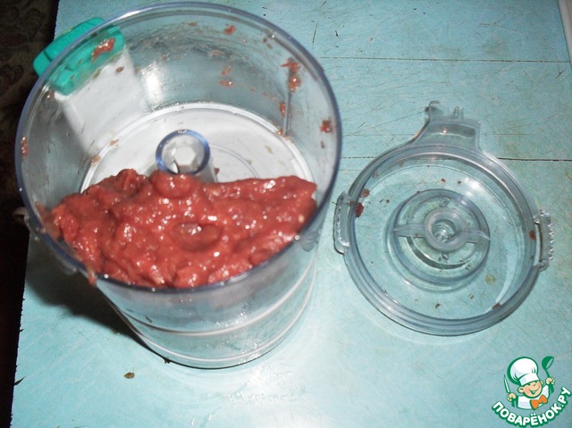 Одну часть размолоть в блендере в фарш, смешать с 1 яйцом и 3 ст. л. муки