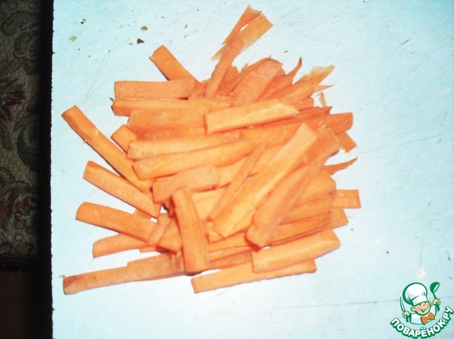 Нарезать морковь полосками.