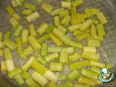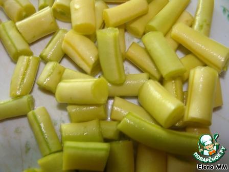 Спаржевую фасоль вымыть, обсушить, нарезать кусочками 1,5-2 см,